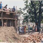 1988 baute die Diözese ein Gesundheitszentrum in Ghutas. Der Pfarrer Thomas Santosh schickte damals aktuelle Baustellenfotos. Bis heute hat sich an den Arbeitsbedingungen nichts geändert. Flipflops statt Arbeitsschuhen, Helme ein Fremdwort … Und es arbeiten viele Frauen auf den Baustellen.