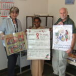 Hildegard Rickert und Walter Plümpe während der Projektreise 2013 im Mother Theresa Hospital in Dindori. Plakate sollen medizinische Aufklärung und Prävention bieten.